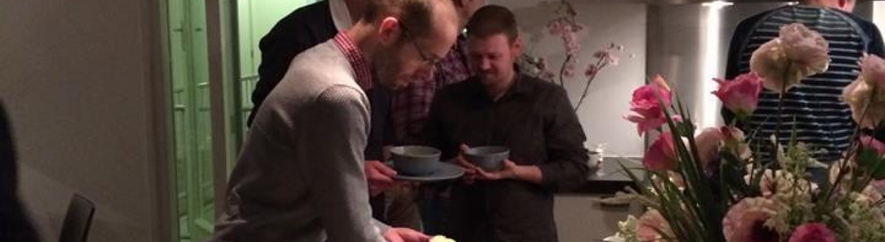 Een ontspannen avond met de mannen van de gemeente. De vrouwelijke equivalent is niet op de gevoelige plaat vastgelegd.